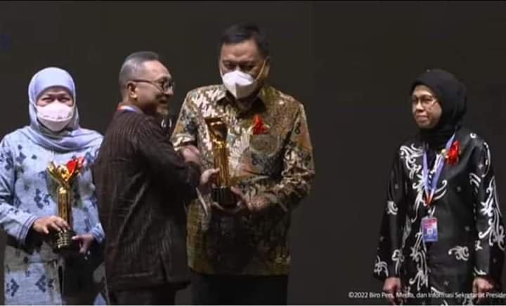 Presiden Jokowi menganugerahkan penghargaan Primaniyarta 2022 kepada Olly Dondokambey, sebagai kepala daerah terbaik pendukung ekspor.