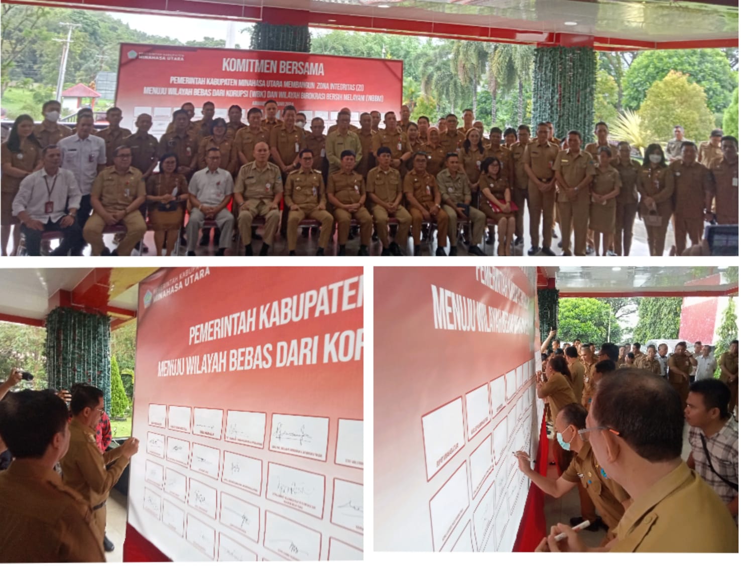 Pencanangan ditandai dengan penandatanganan spanduk, ‘Komitmen Bersama Pemkab Minut Membangun Zona Integritas Menuju Wilayah Bebas dari Korupsi (WBK) dan Wilayah Birokrasi Bersih Melayani(WBBM) yang dilakukan oleh seluruh pejabat eselon II dan III, Direktur PDAM, Direktur Rumah Sakit Umum Daerah Maria Walanda Maramis, dan para Camat. Spanduk yang ditandatangani itu terpampang di depan lobi Kantor Bupati Minut.