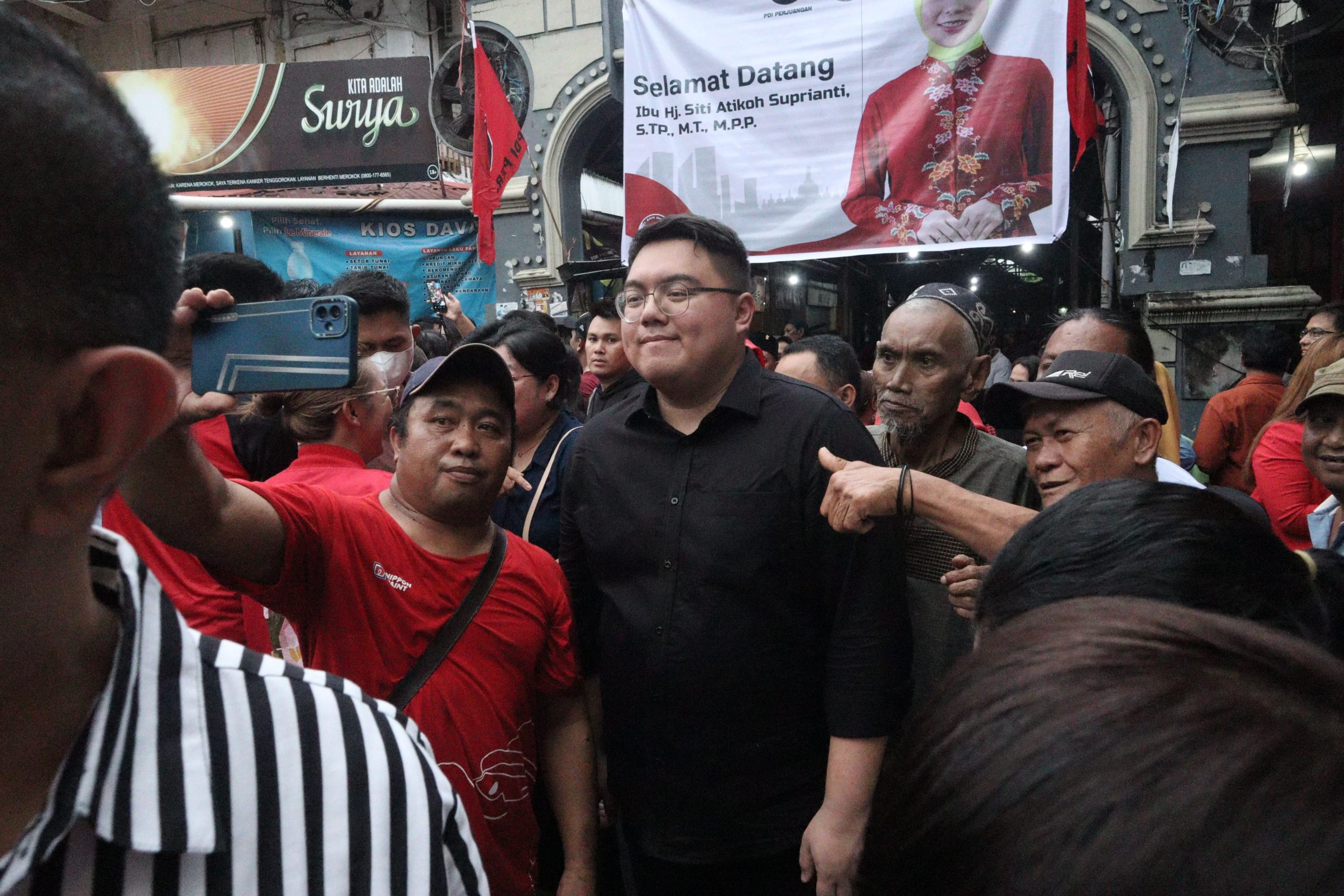 Rio yang juga Ketua Tim Pemenangan Daerah (TPD) Ganjar-Mahfud Sulawesi Utara turut mendampingi Siti Atiqoh Supriyanti dalam diskusi bersama pedagang pasar dan pelaku UMKM.