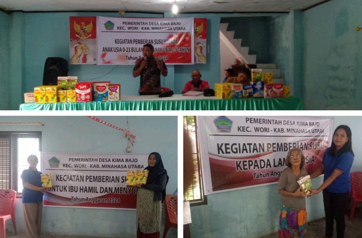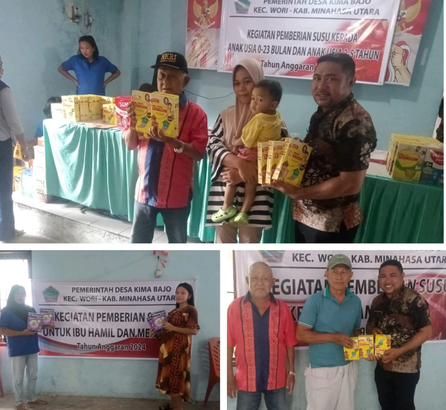 Salah satunya, Pemdes Kima Bajo memberikan bantuan nutrisi tambahan berupa pembagian susu untuk anak dalam hal ini bayi/balita, ibu hamil (Bumil), ibu menyusui dan para lansia yang ada di desa Kima Bajo.
