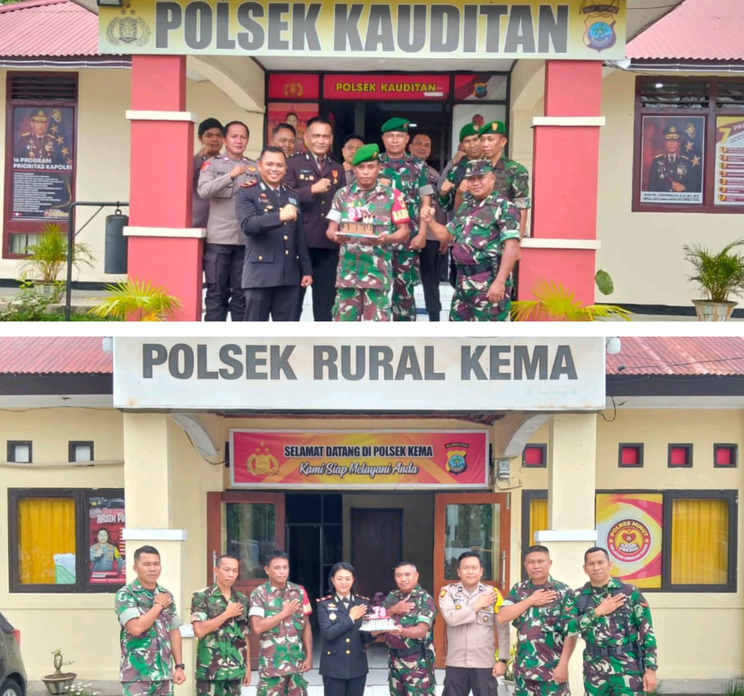 HUT Bhayangkara Ke-78, Koramil 1310-05 Sambangi Polsek Kauditan dan Kema, Ini Yang Mereka Lakukan!!