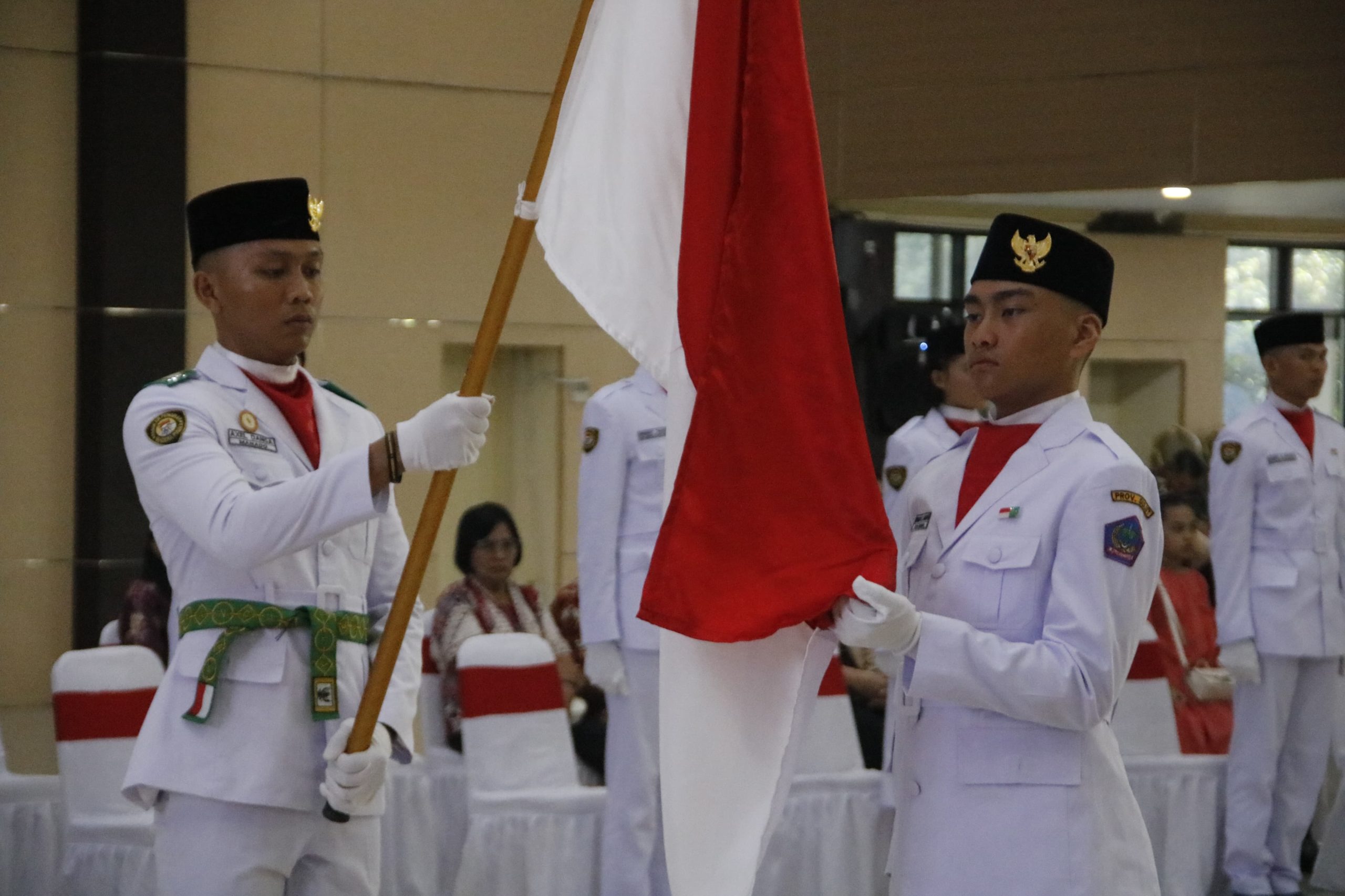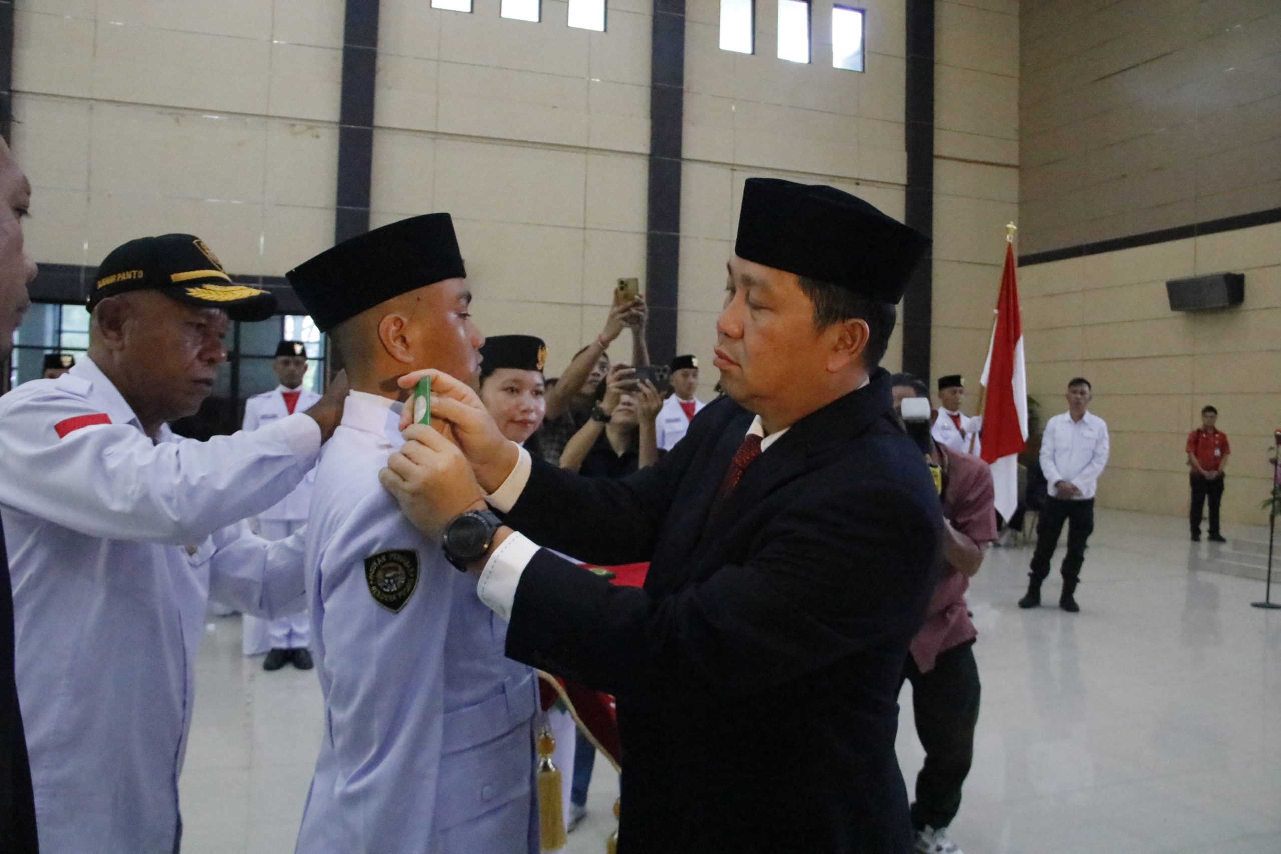 Prosesi pengukuhan Paskibraka sebanyak 30 orang siswa siswi yang berasal dari 15 kabupaten/kota ini, ditandai dengan penyematan tanda anggota Paskibraka secara simbolis oleh Wagub Kandouw.