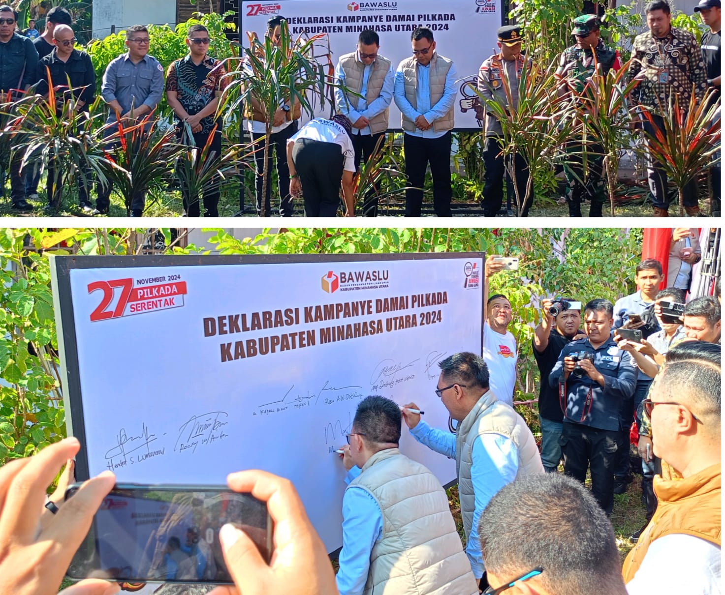 Minahasa Utara, www.inspirasikawanua.com – Sosialisasi dan apel siaga serta deklarasi kampanye damai yang digelar Bawaslu Minut hanya dihadiri Paslon MJP-CK.