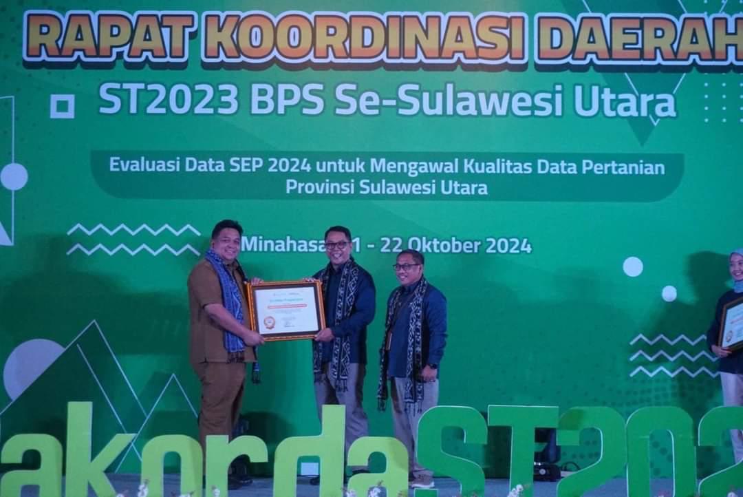 Diketahui, acara yang berlangsung di Manado Tateli Resort and Convention ini dihadiri oleh berbagai pejabat penting, termasuk Inspektur Utama BPS RI, Dr. Dadang Hardiwan, yang langsung menyerahkan penghargaan tersebut.
