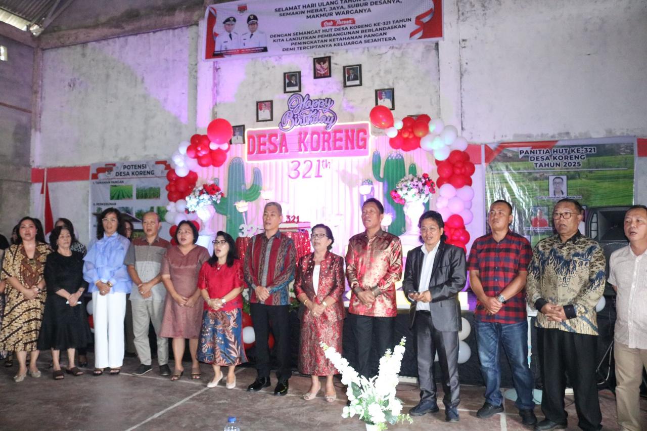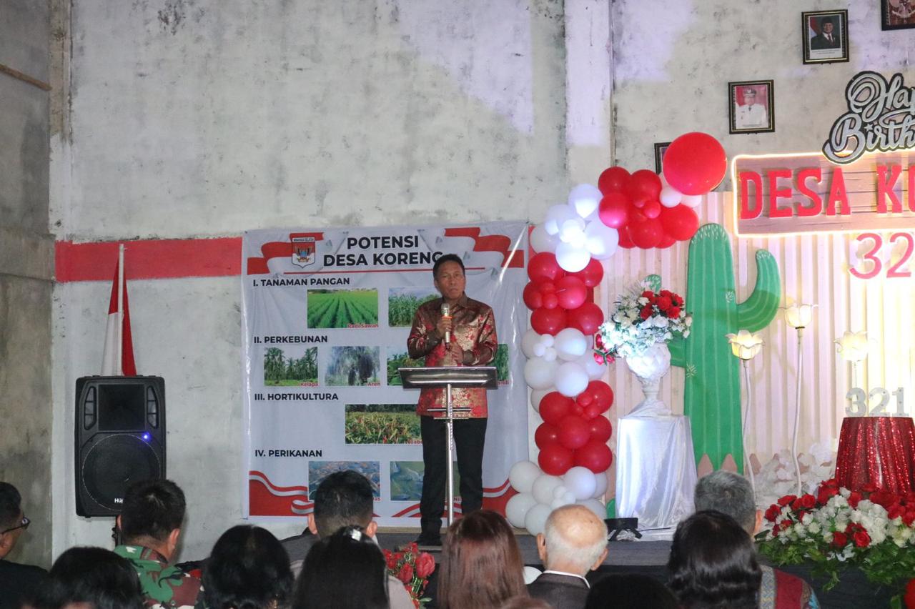 Dalam kesempatan tersebut, Bupati Franky Wongkar menyampaikan ucapan Selamat Hari Jadi Ke-321 kepada Pemerintah Desa dan segenap elemen masyarakat yang ada di Desa Koreng.
