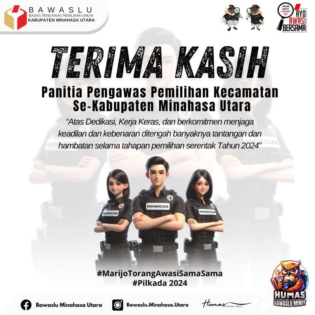 Minahasa Utara, www.inspirasikawanua.com – Bawaslu Kabupaten Minahasa Utara mengucapkan terima kasih yang sebesar-besarnya atas dedikasi dan kinerja luar biasa yang telah ditunjukkan oleh seluruh Pengawas Kecamatan se-Kabupaten Minahasa Utara hingga akhir masa kerjanya.