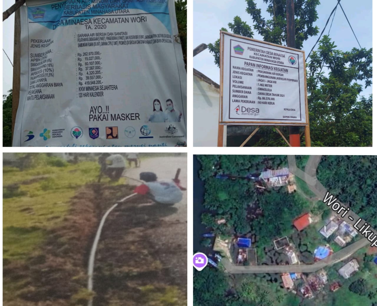 Rp 80 jutaan untuk jaringan pipa pada tahap kedua, dan tambahan Rp 13 jutaan lainnya. Namun, hingga kini, instalasi air bersih yang menjadi tujuan proyek tersebut tidak berfungsi dan tidak memberikan manfaat bagi warga desa.