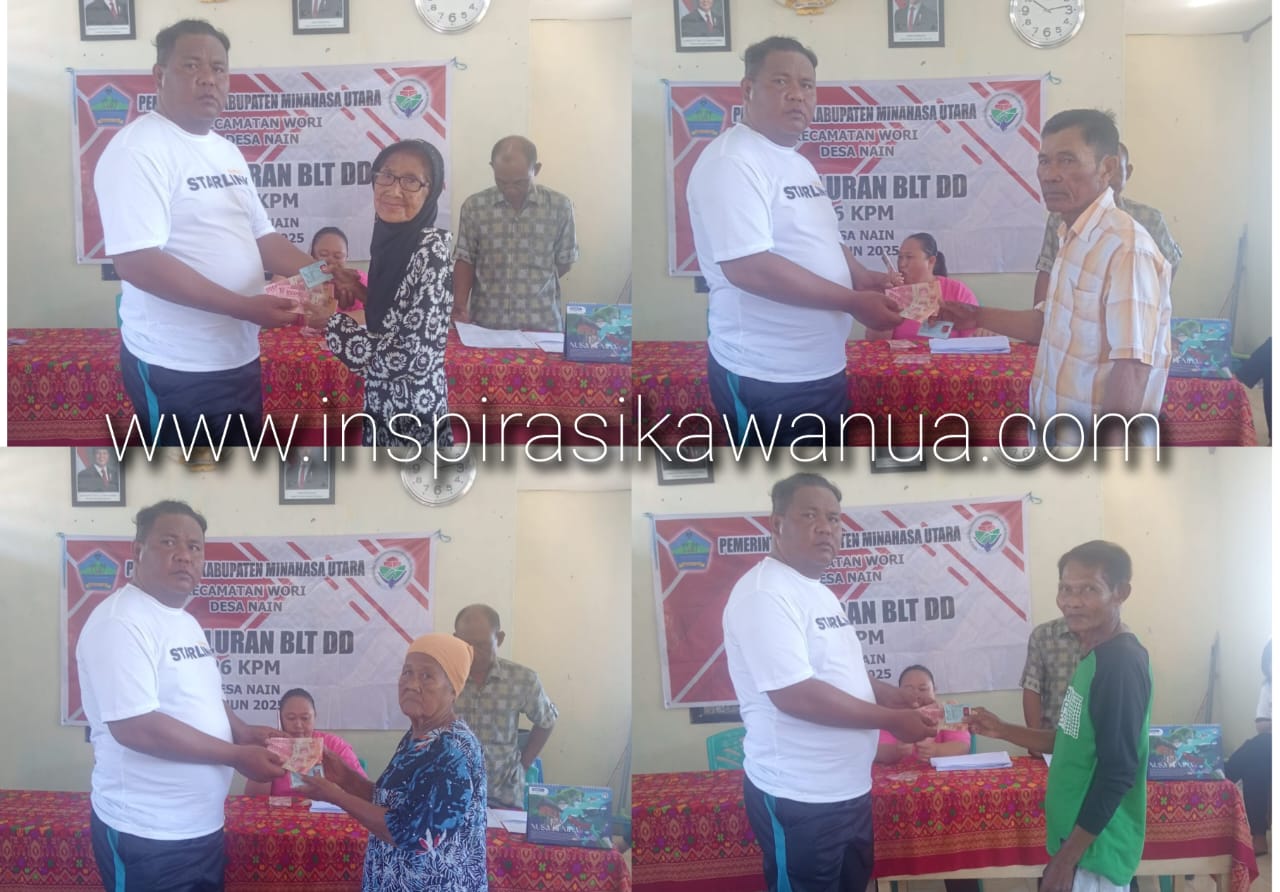 Minahasa Utara, www.inspirasikawanua.com – Pemerintah Desa Nain, Kecamatan Wori, Kabupaten Minahasa Utara kembali menyalurkan Bantuan Langsung Tunai Dana Desa (BLT DD) yang bersumber dari Dana Desa untuk bulan Juli 2025. Penyaluran bantuan ini dilakukan kepada 26 Keluarga Penerima Manfaat (KPM), dengan masing-masing menerima bantuan sebesar Rp 300.000.