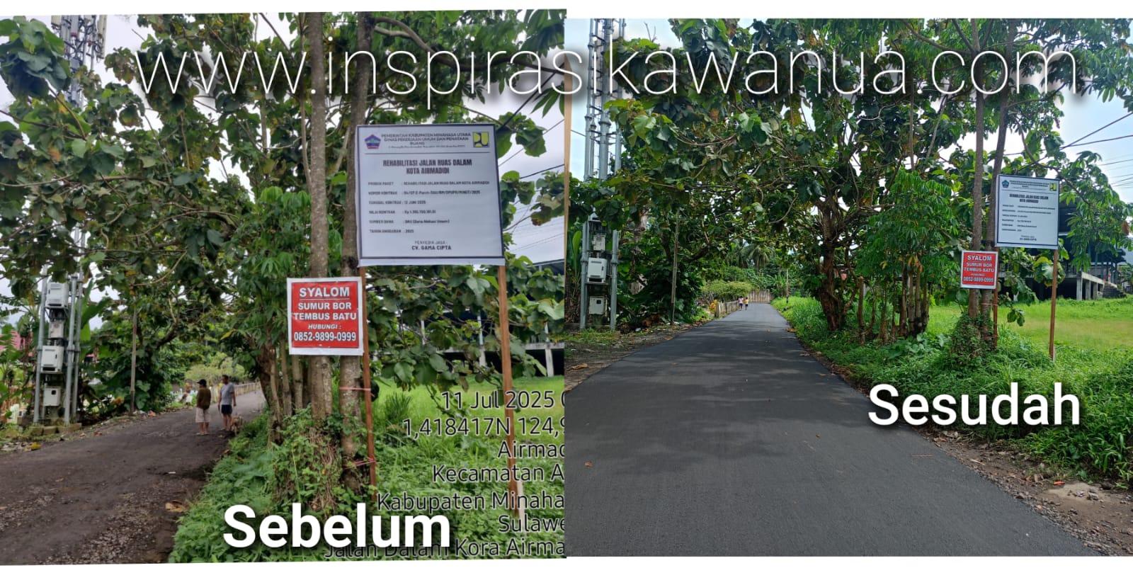 Minahasa Utara, www.inspirasikawanua.com— Rehabilitasi jalan ruas dalam kota Airmadidi yang menelan anggaran lebih dari Rp1,3 miliar akhirnya rampung dikerjakan. Pekerjaan yang dimulai sejak 12 Juni 2025 itu kini telah selesai, dan masyarakat, khususnya di wilayah Kayu Besi, sudah mulai menikmati hasil pembangunan tersebut.