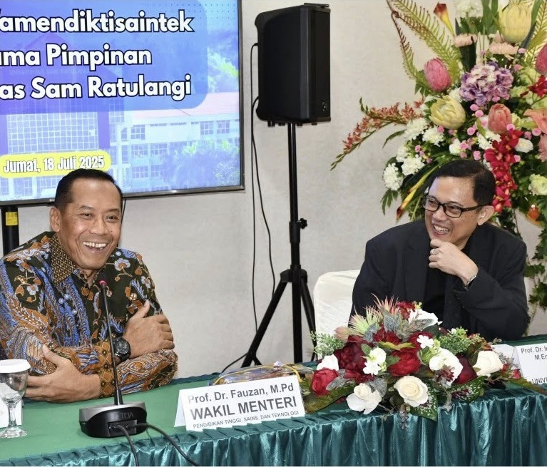 Manado, www.inspirasikawanua.com – Wakil Menteri Pendidikan Tinggi, Sains dan Teknologi (Wamendiktisaintek) Prof. Dr. Fauzan M.Pd melakukan kunjungan kerja ke Universitas Sam Ratulangi (Unsrat) Manado, Jumat (18/7/2025).