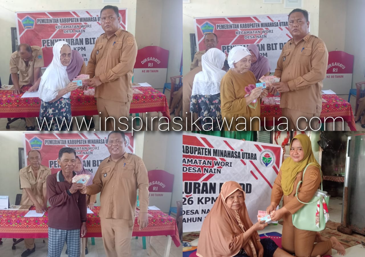 Minahasa Utara, www.inspirasikawanua.com – Pemerintah Desa (Pemdes) Nain, Kecamatan Wori, Kabupaten Minahasa Utara, kembali menyalurkan Bantuan Langsung Tunai Dana Desa (BLT-DD) tahun 2025 kepada 26 keluarga penerima manfaat (KPM).